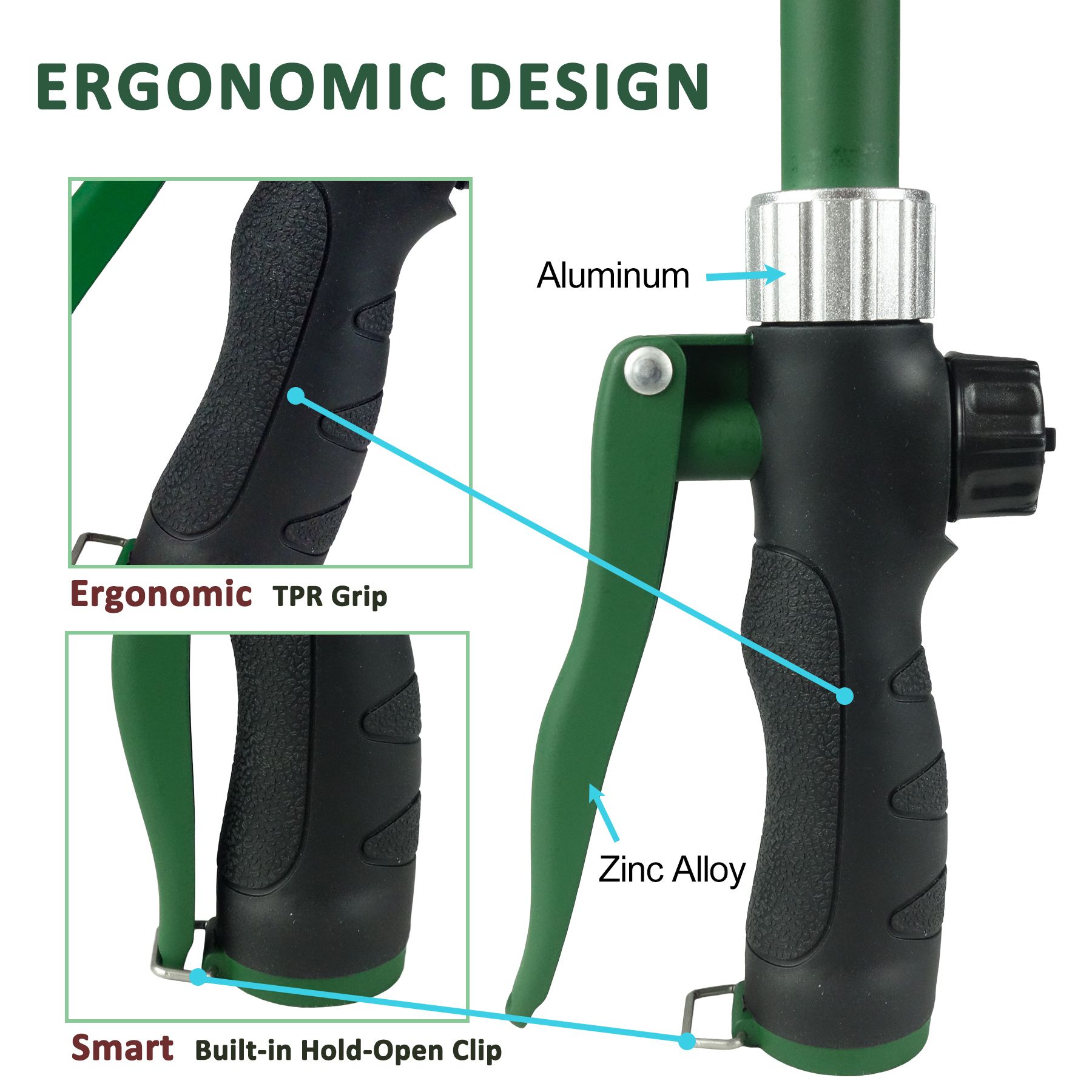 Light, Strong Aluminum Construction and Excellent Build Quality: Constructed from zinc alloy, aluminium alloy, aluminium and TPR. This material is strong and lightweight, giving you the best option for a watering wand. The lightweight design means that it is suitable to be used by people of all ages. The wand is built to last and has a high-quality anodized finish which is designed to help it to prevent rust, corrosion, and wear-and-tear.