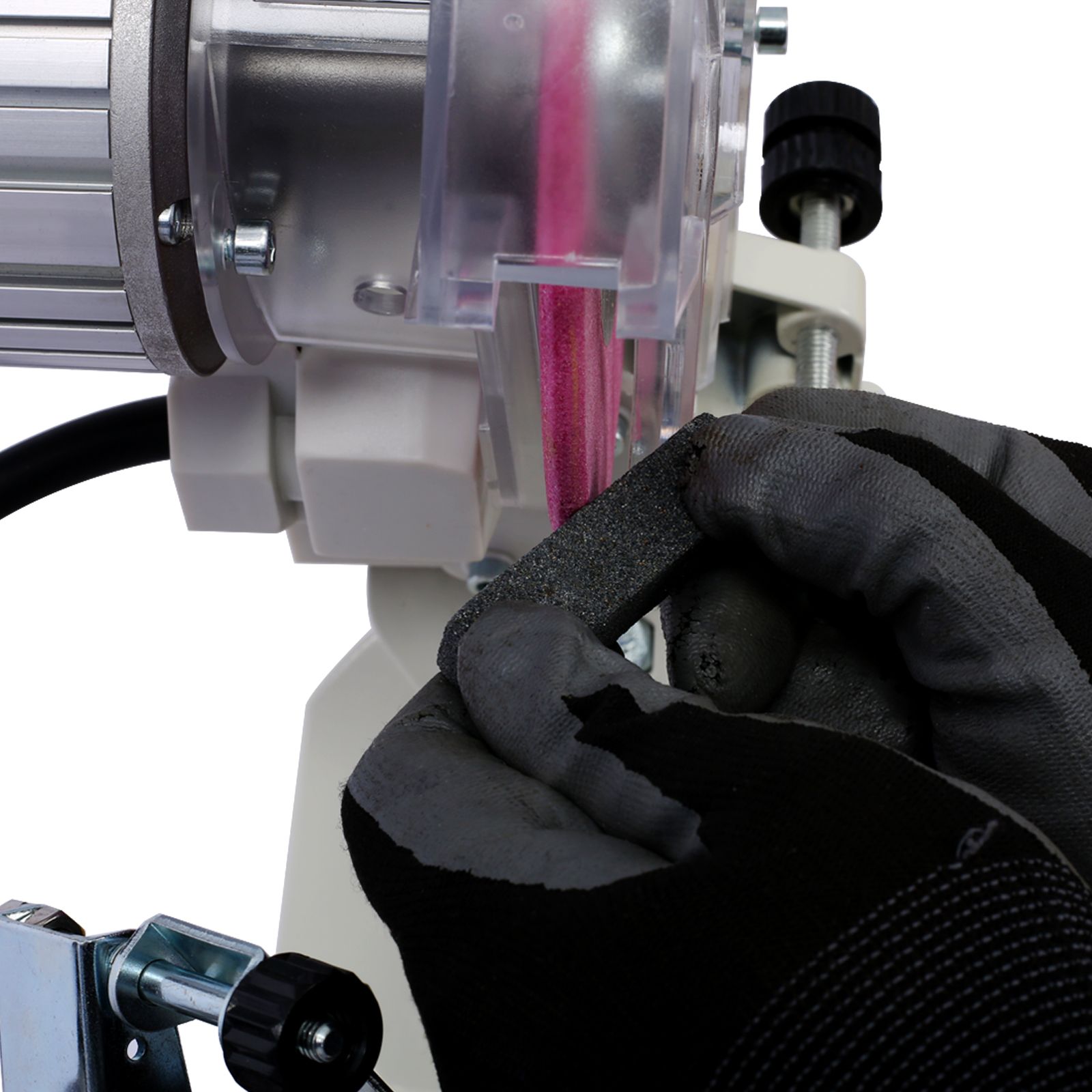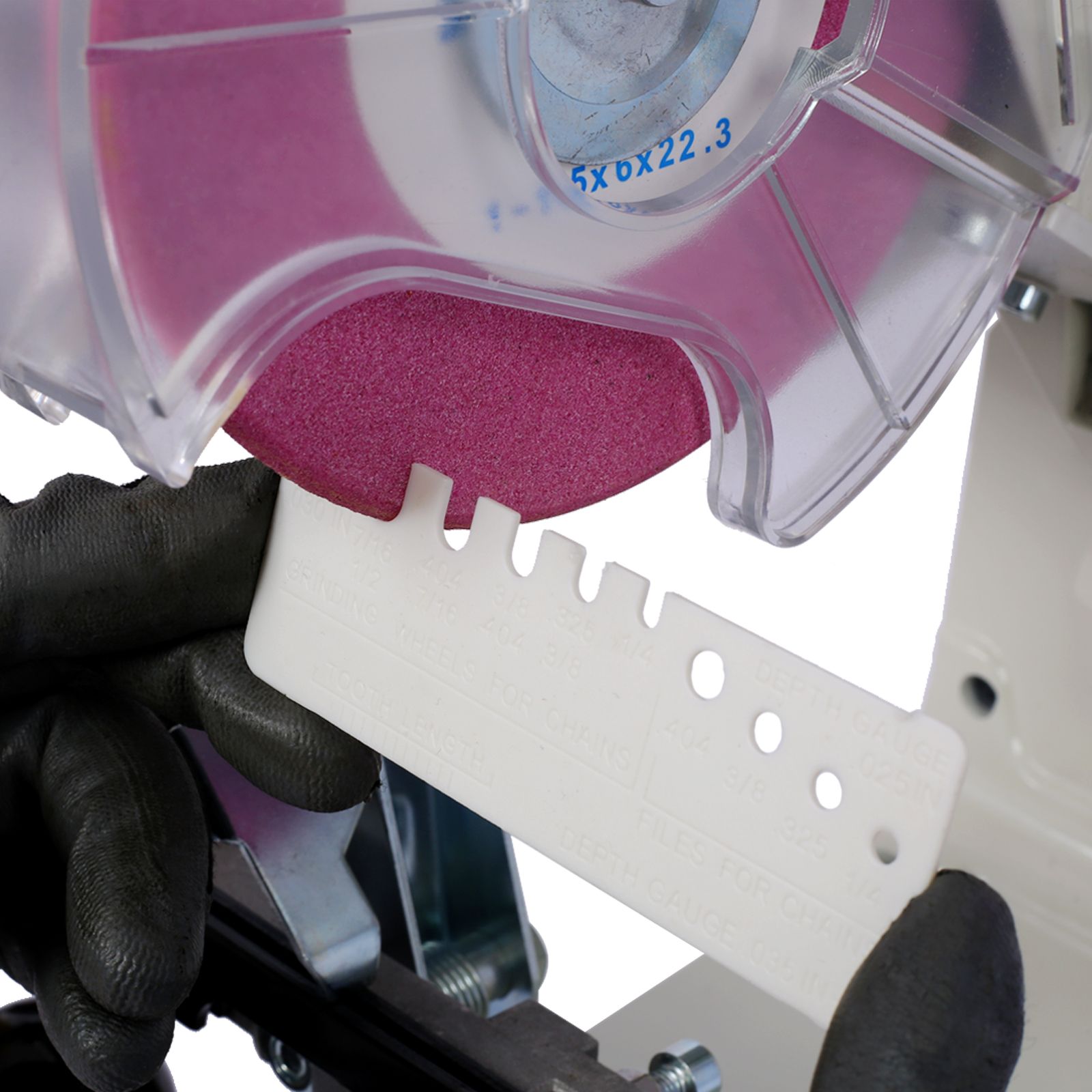 Perfect for professionals: This grinder is designed for frequent, high volume chain sharpening, making it an excellent choice for professional users.Save time and money: With this versatile grinder, you can sharpen your own chainsaw chains right in your workshop or garage, saving you time and money.Universal sharpener: Sharpen almost any saw chain, including those from manufacturers like Oregon, Stihl, Husqvarna, and more, with the ability to sharpen up to .404" pitch chains.Accurate sharpening: The Grinder features multiple adjustment points for precision sharpening, and a built-in light that provides better visibility while you work.Complete kit: Included in the box are the Grinder, a dressing brick and profile guide, operator instructions, plus two grinding wheels (3.2mm & 4.7mm) and a 6.0mm flat profile disc for depth gauge maintenance.