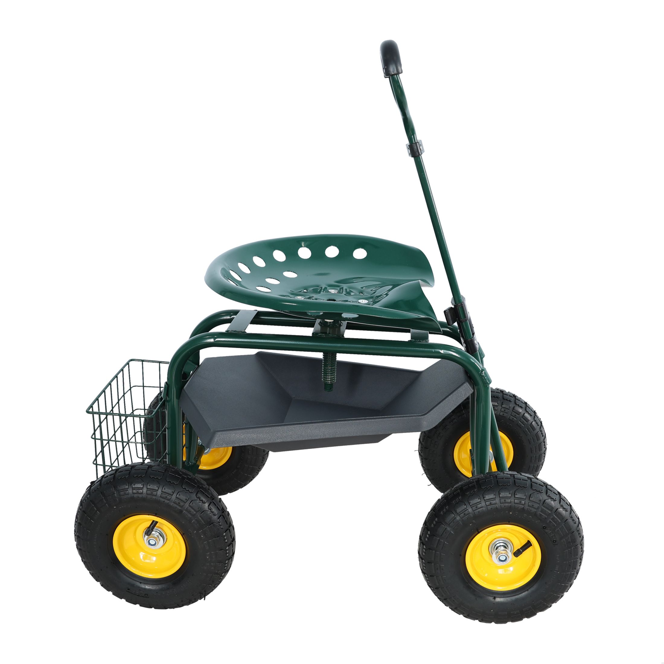 Rolling Garden Work Chair with Wheels, Garden Cart with Steering Handle, 360 degree Swivel Seat