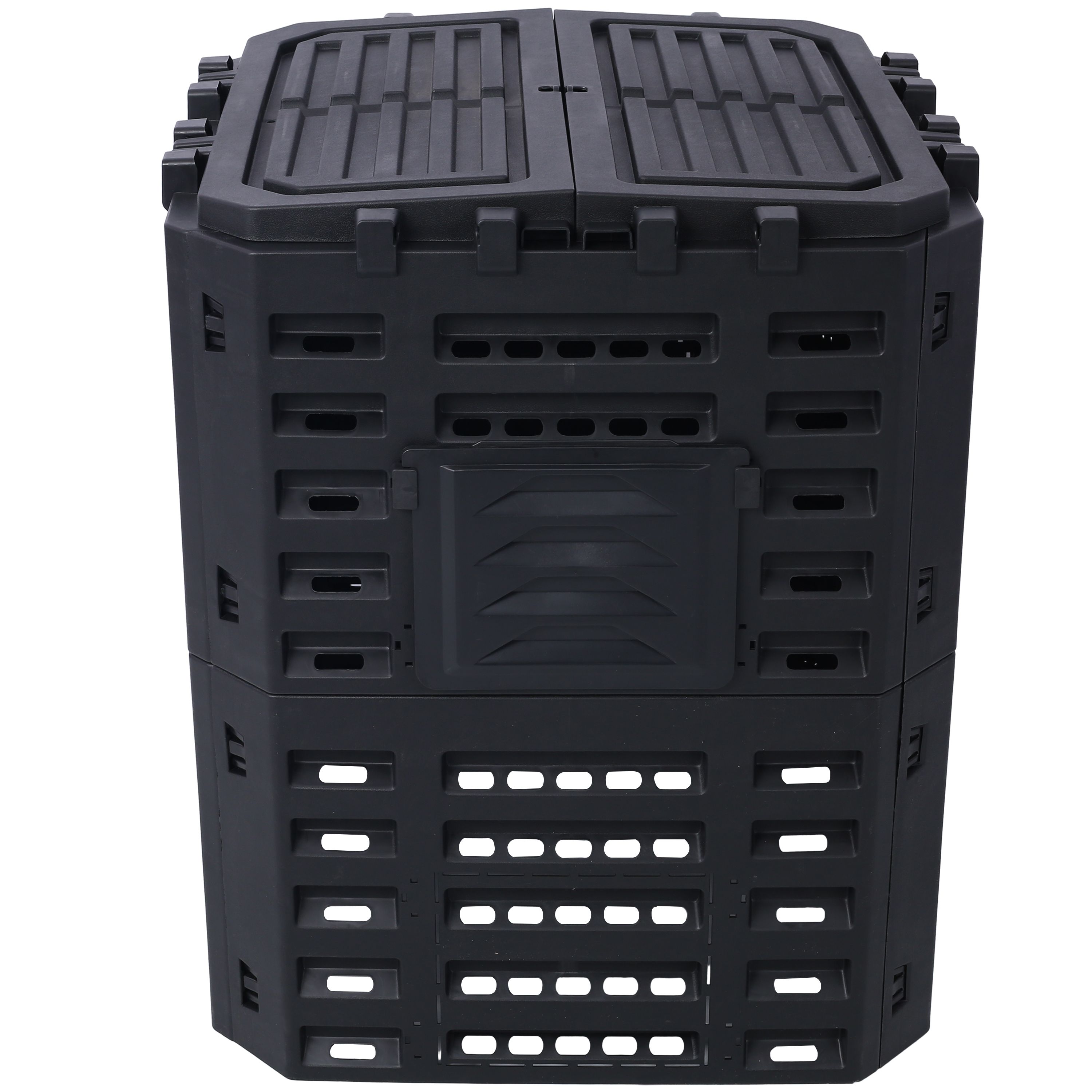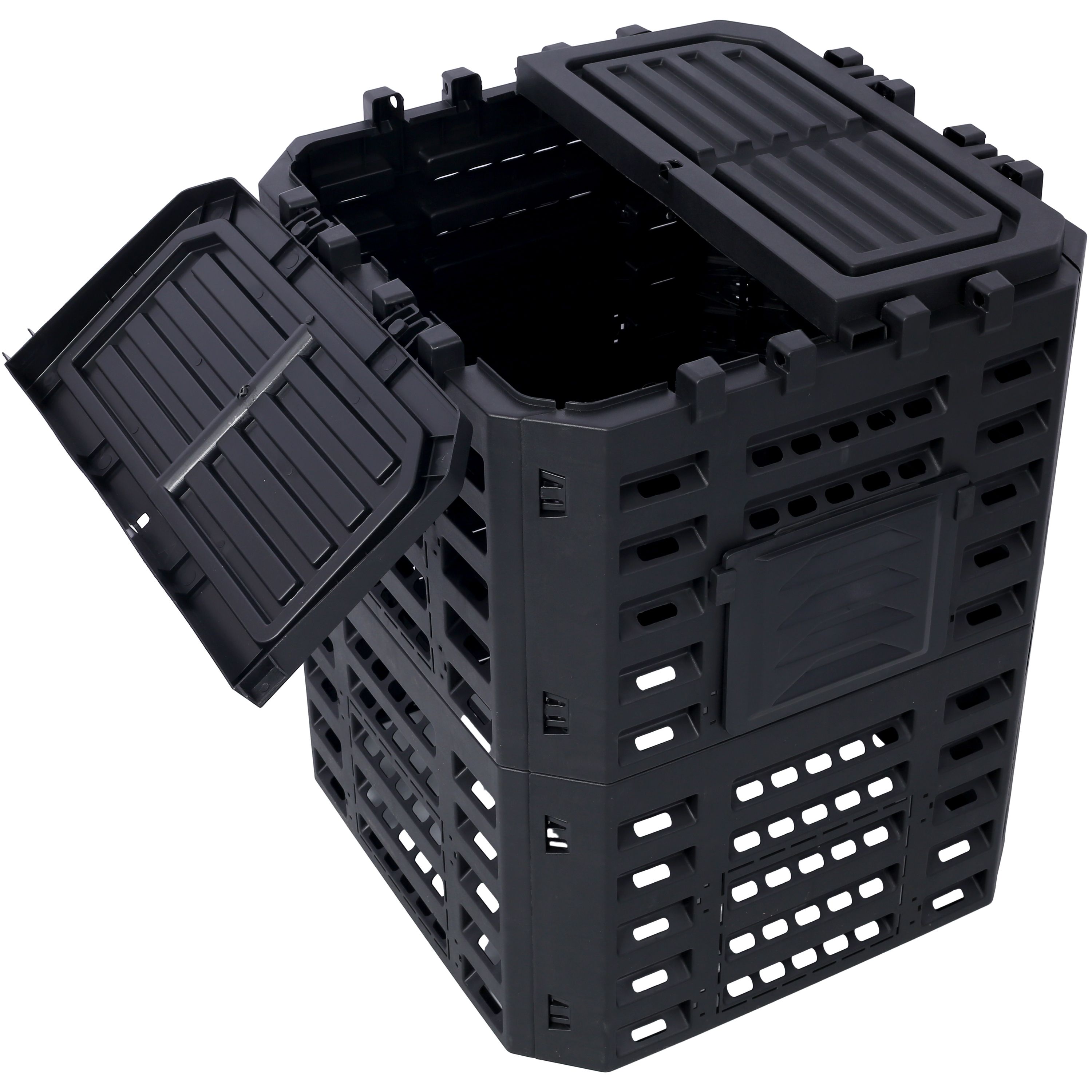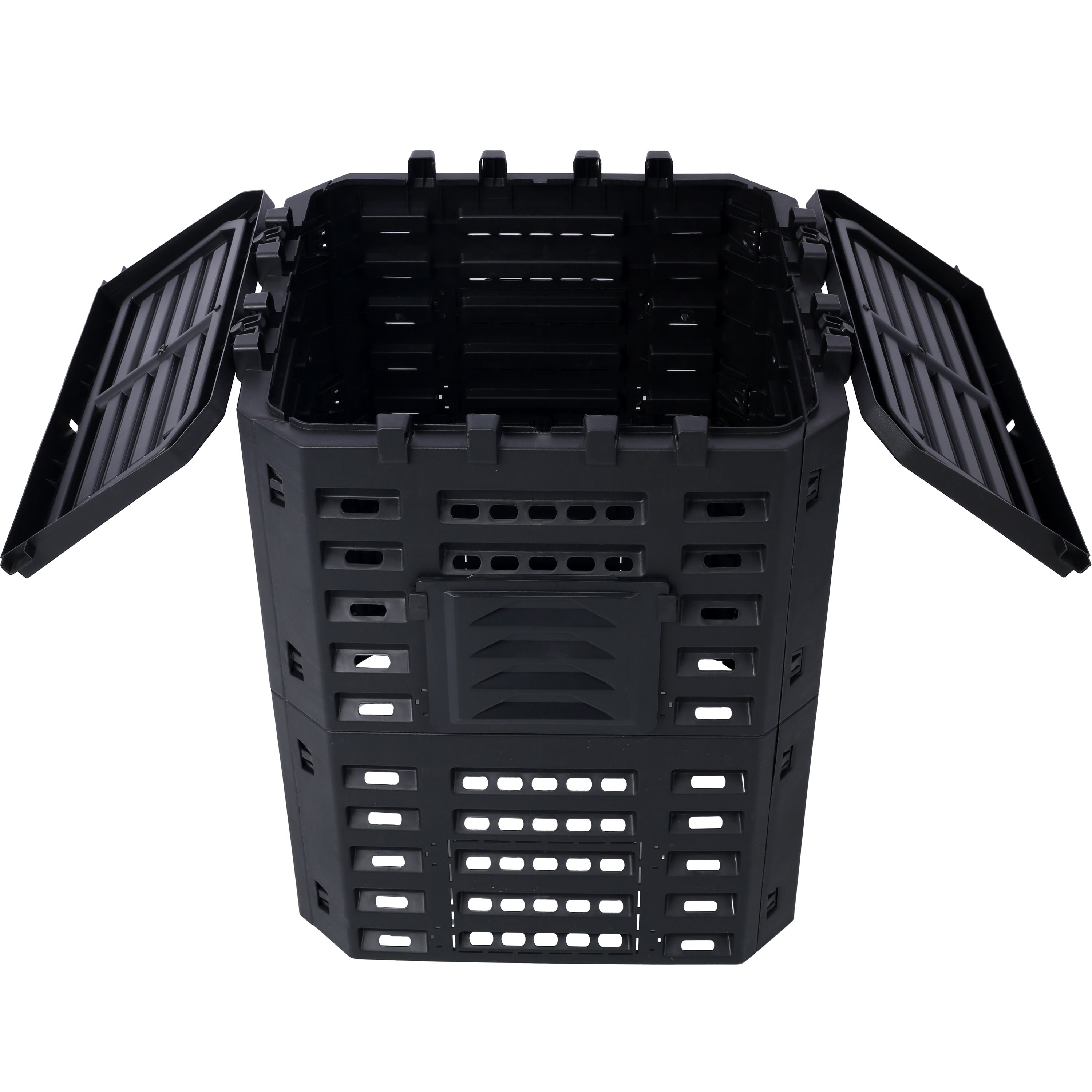 Premium Recycled Plastic Construction: Our composting bin is made from BPA-free recycled plastic, ensuring that valuable vitamins are not compromised by toxins. The black PP plastic material maintains heat and regulates moisture, resulting in a shorter composting time.