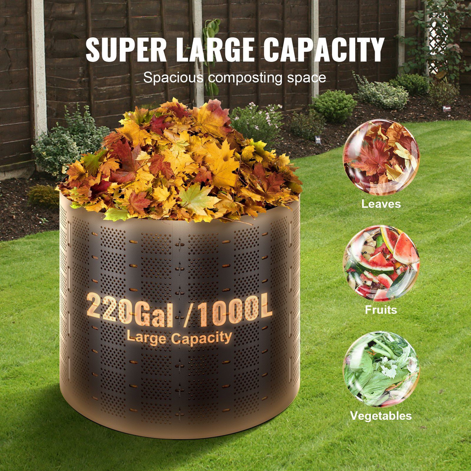 VEVOR Compost Bin 220 Gallon, Outdoor Expandable Composter, Easy to Setup & Large Capacity Composting Bin, Fast Creation of Fertile Soil