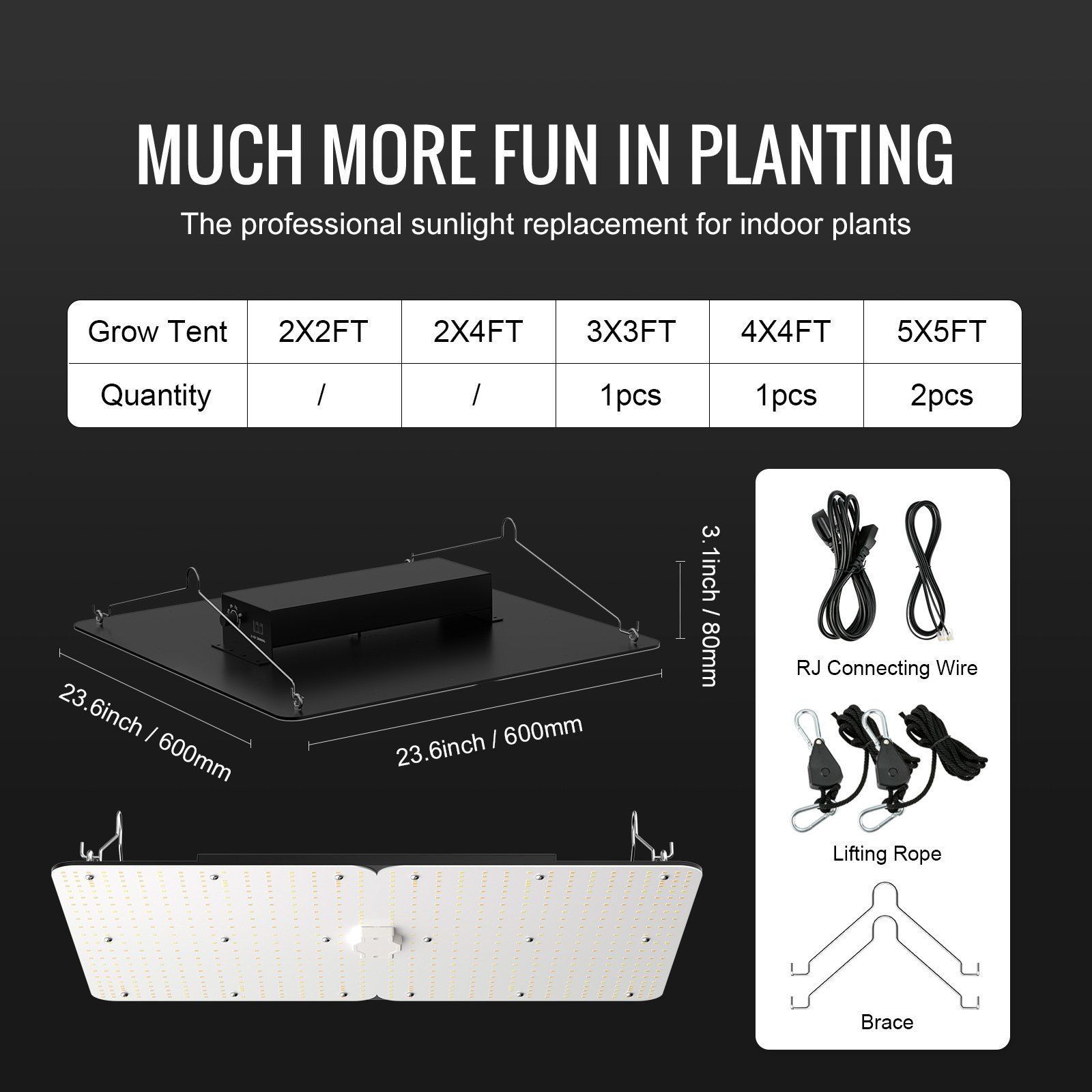 2.High-Performance PPFD: Quality is our priority! It comes equipped with premium Samsung 281B diodes. More LED quantities and a new diode layout allow plants to receive more robust and uniform light. Consuming only 400W, ideal for high-benefit planting.