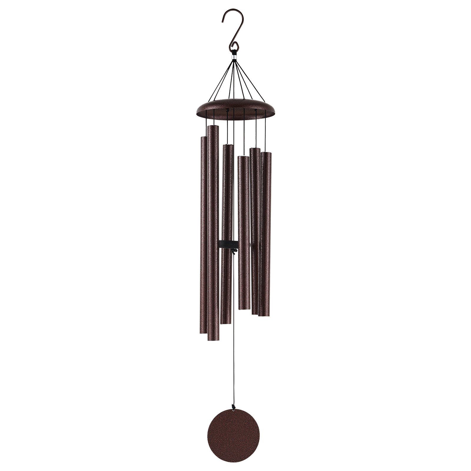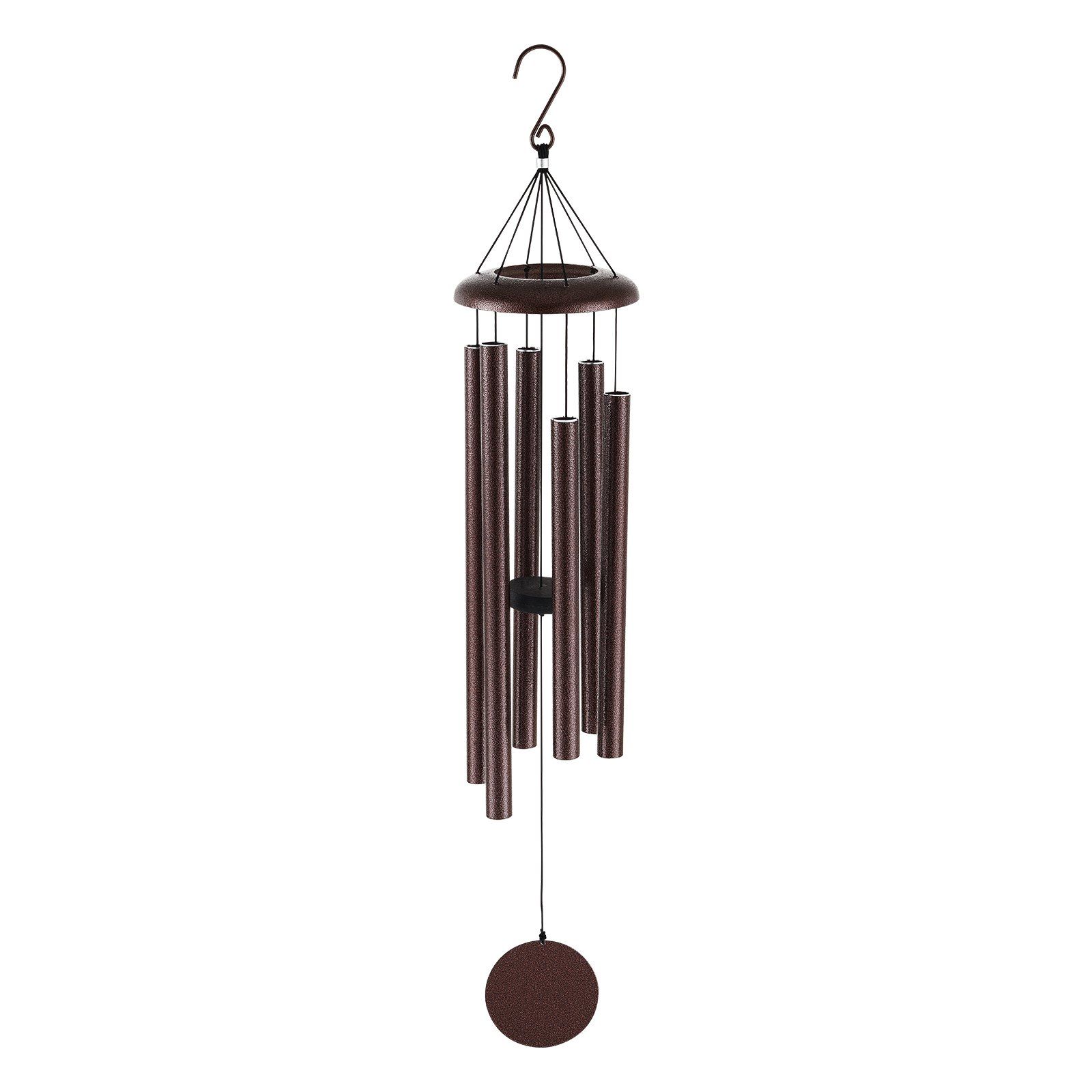 1.45-Inch Wind Chimes for Outside: Our bronze metal wind chimes feature 6 aluminum tubes, with the longest tube measuring 21.6" and a diameter of 1.18". The durable nylon cord and high-density clapper produce a rich, melodious sound. It includes a postcard, a greeting card, and an envelope.