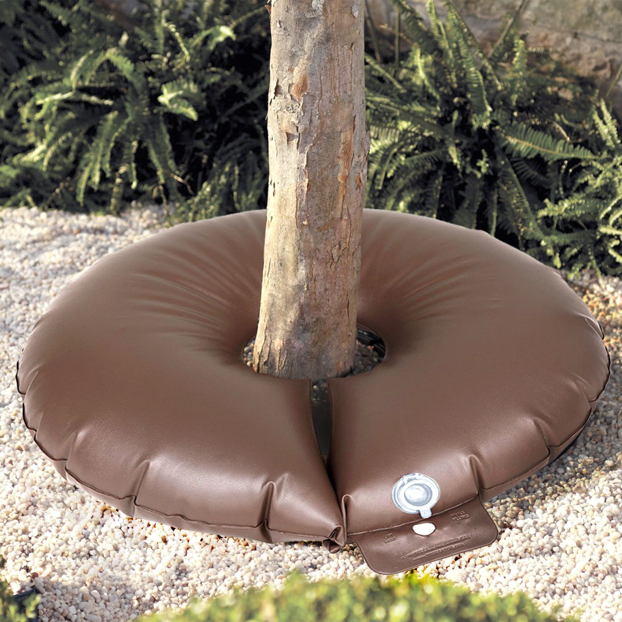 Tree Watering Bags provide slow and controlled irrigation to the trees; allowing a better saturation of deep waters; promoting the deep growth of the tree roots; reducing the shock of transplants and drought stress. Its doughnut shape makes it adjustable so it can easily fit around the base of any tree; shrub; or bush.