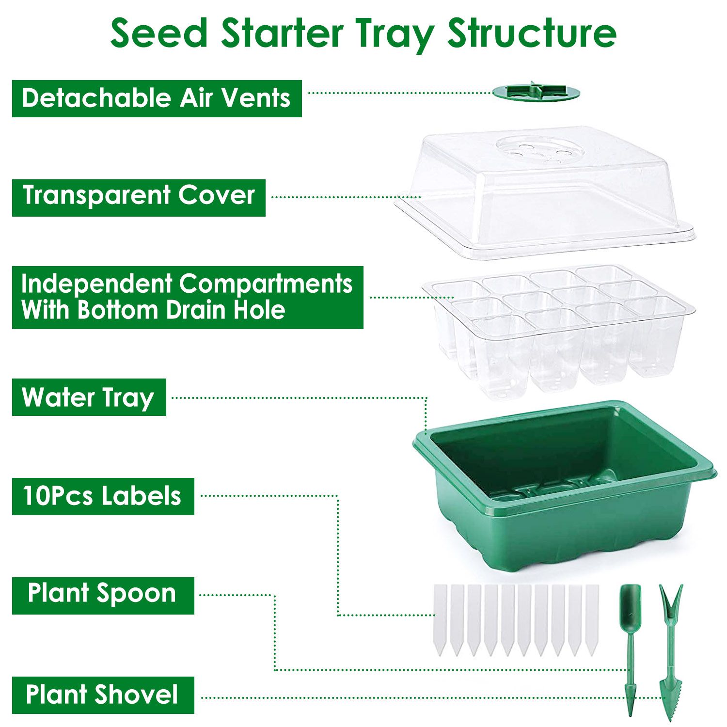 4.12Pcs Separate Seed Slots Per Tray