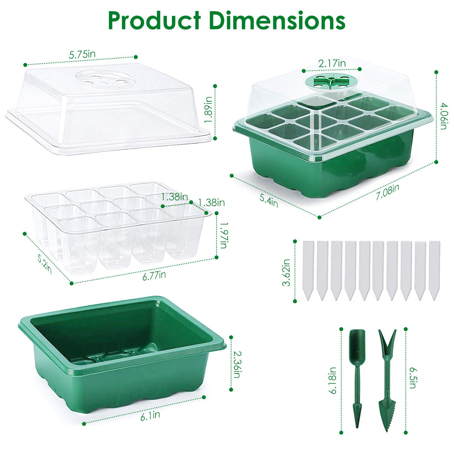 **Perfect Partner For Heating Mat*:Heat resistant up to 140℉; these seedling trays are strong enough to be used on a heat mat and no-worry about melting. Come with labels and dual garden tools; they help you mark the vegetables and planting. Highly transparent plastic cover and compartment tray; it allow you to observe easily and record the growth of your plant. Enjoy the happiness of plant growth.