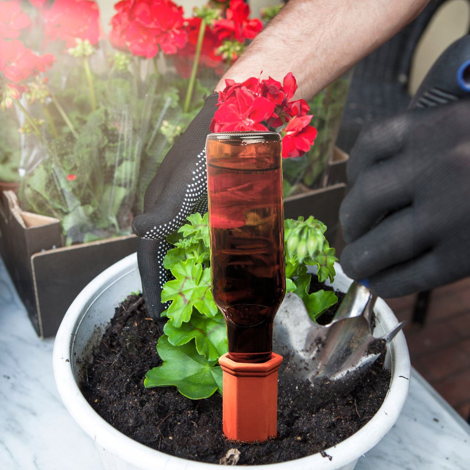*Easy To Use*:Installed without any tools,just soak the stake in water for 5 minutes,then dig a hole in the soil and gently insert our self-watering spike into the soil. Plug a long neck bottle filled with water in,and finally you get a great automatic watering device without unpleasant water pressure adjustment and water leakage.