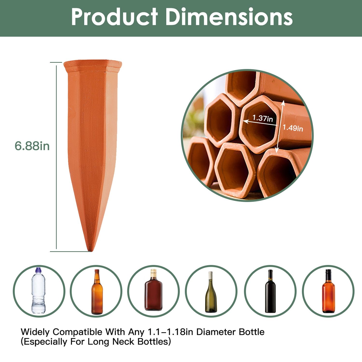 *Eco-Friendly Terracotta*:Compared to those plastic watering devices,our upgraded plant watering spike is made of premium terracotta,which achieve automatically water seeping and excellent water permeability. The terracotta plant waterer will seep water when the soil is dry,and stop seeping when the soil is contained enough moisture.