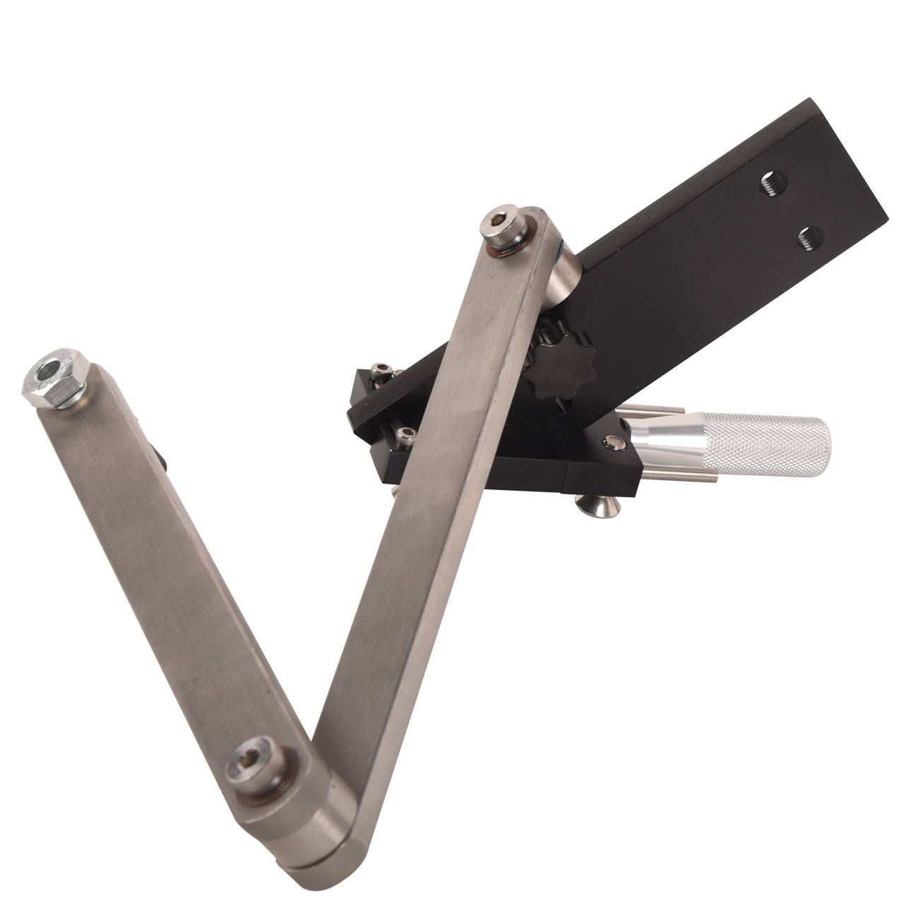 [Quick Cut]The sharpener with unique design has a vice head to hold the mower blade and an articulating arm to attach the grinder. Holds blades securely to perfectly sharpen mulching blades in a matter of seconds. Grinding multiple blades simply and flawlessly.