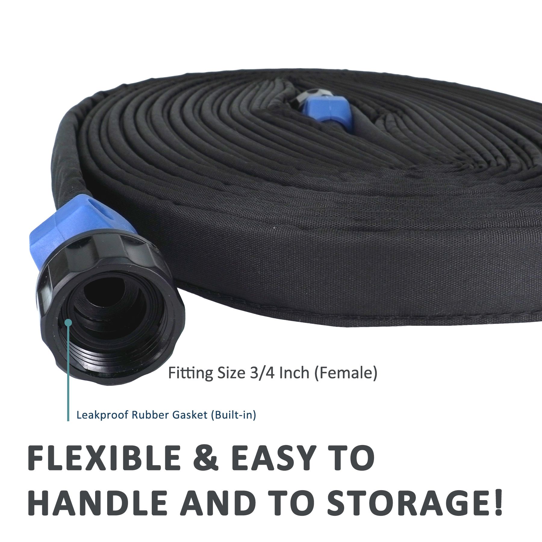 Premium Material Made: This soaker hose is heavy duty double layer design with PVC liner covered in extra strength fabric. Water seeps out of all sides of the fabric jacket and directly into the soil. Flat design makes it easy to roll up and store.