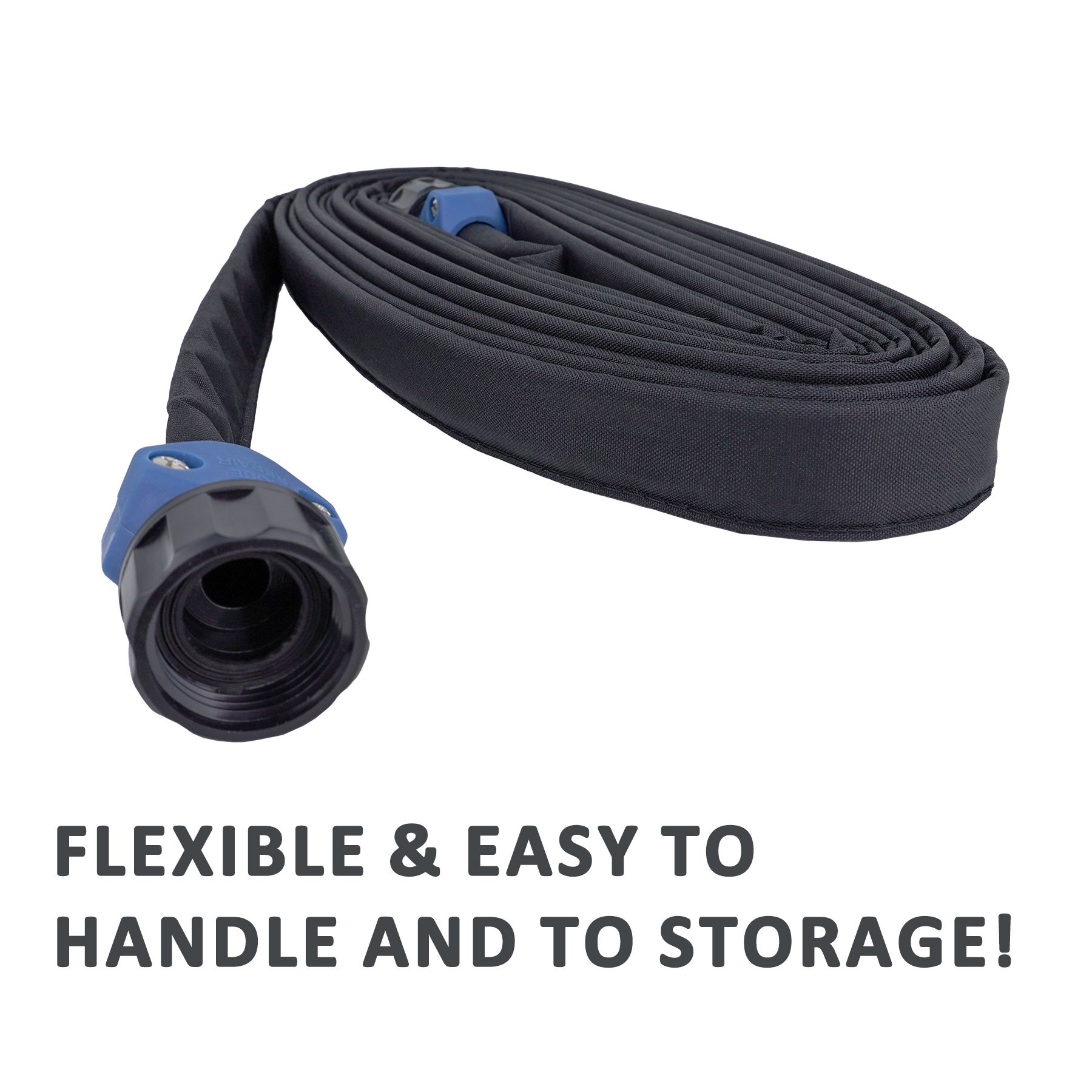 Premium Material Made: This soaker hose is heavy duty double layer design with PVC liner covered in extra strength fabric. Water seeps out of all sides of the fabric jacket and directly into the soil. Flat design makes it easy to roll up and store.