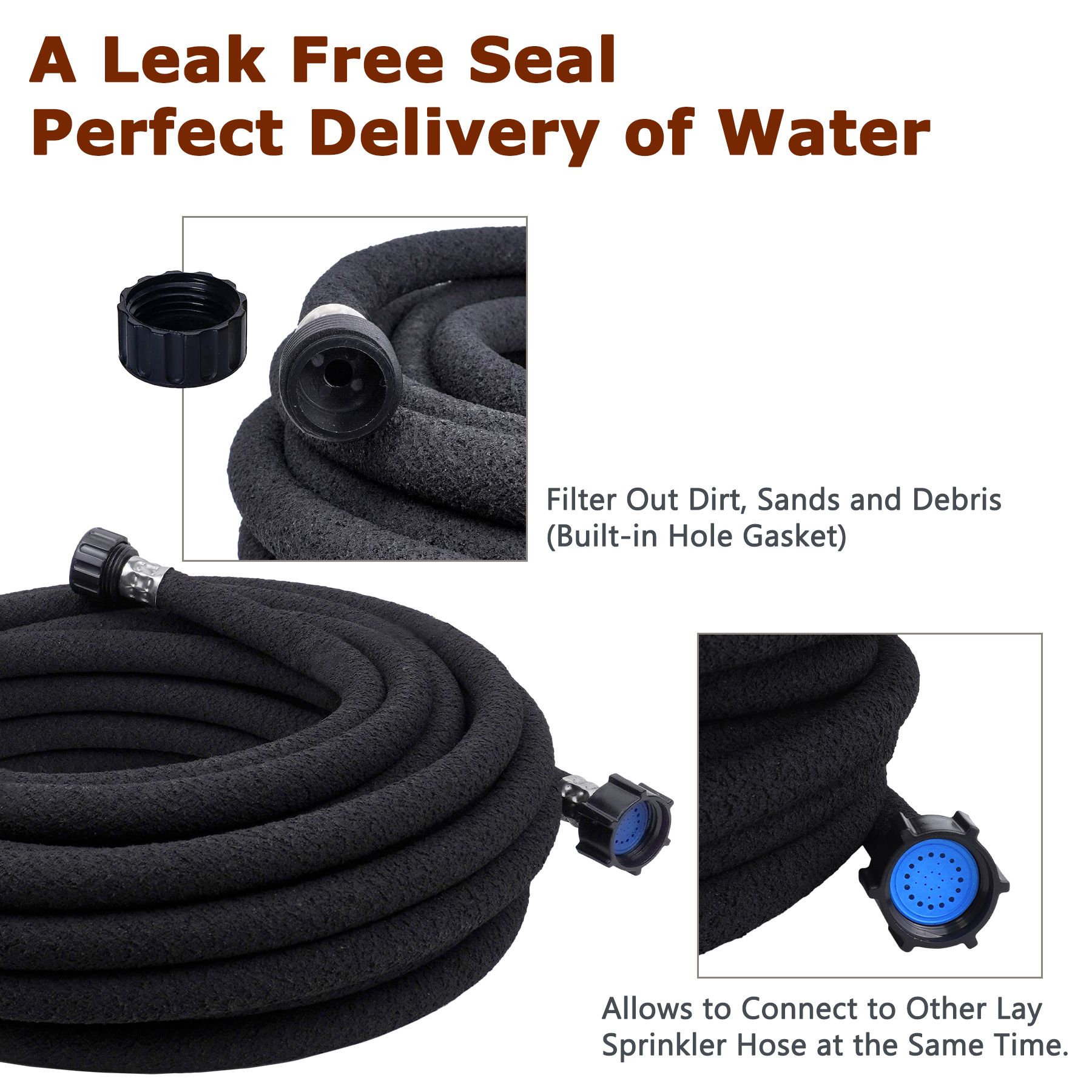 Flexible: Quick attach reinforced fittings are included and make for easy connect of additional soaker hoses and easy to unroll and stake in garden; flower bed; ground cover or other landscaped areas.