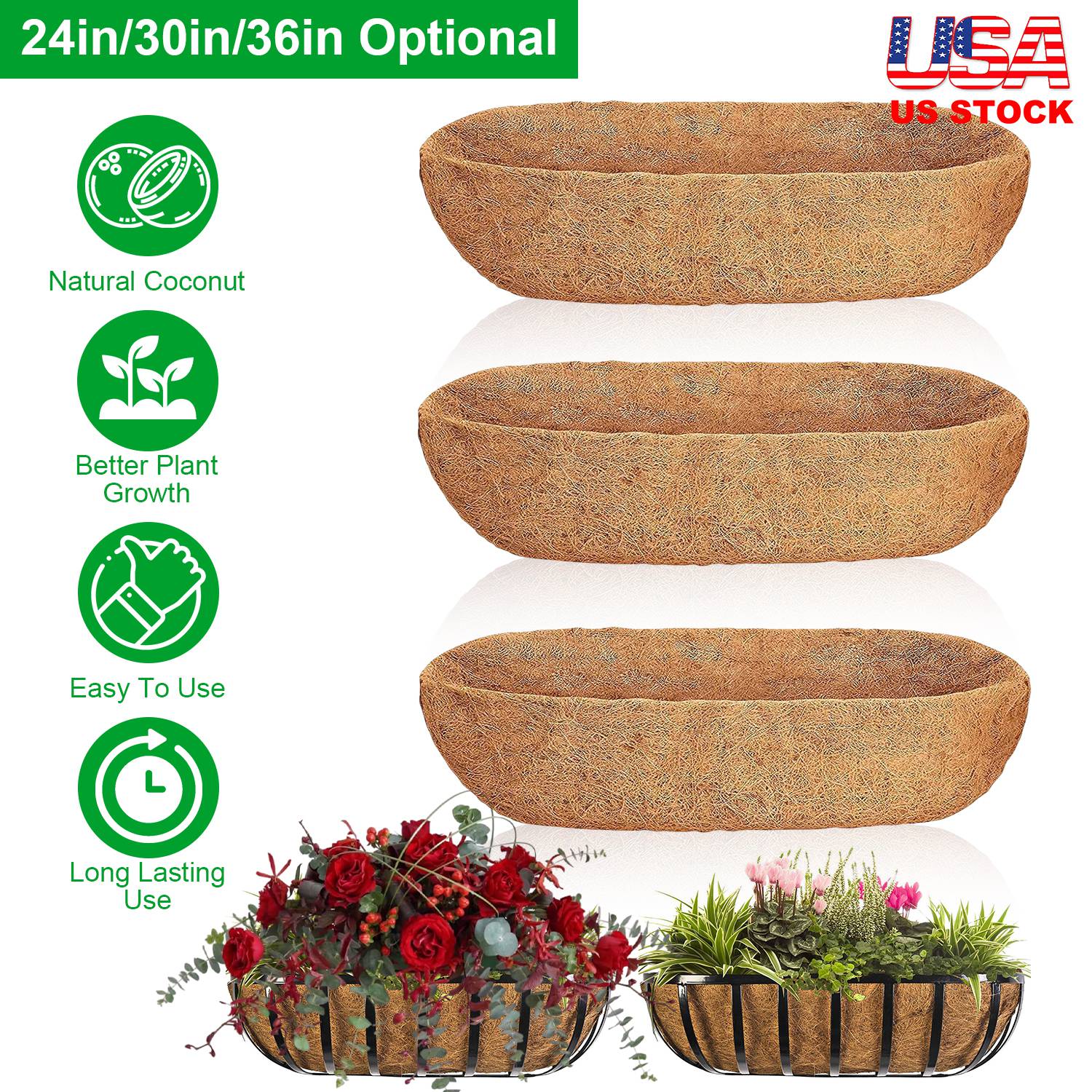 Home > 3Pcs 24in/30in/36in Trough Coco Liners For Planters Coconut Coir Planter for Window Box Hanging Trough Basket Half Moon Planter Liner Replacement For