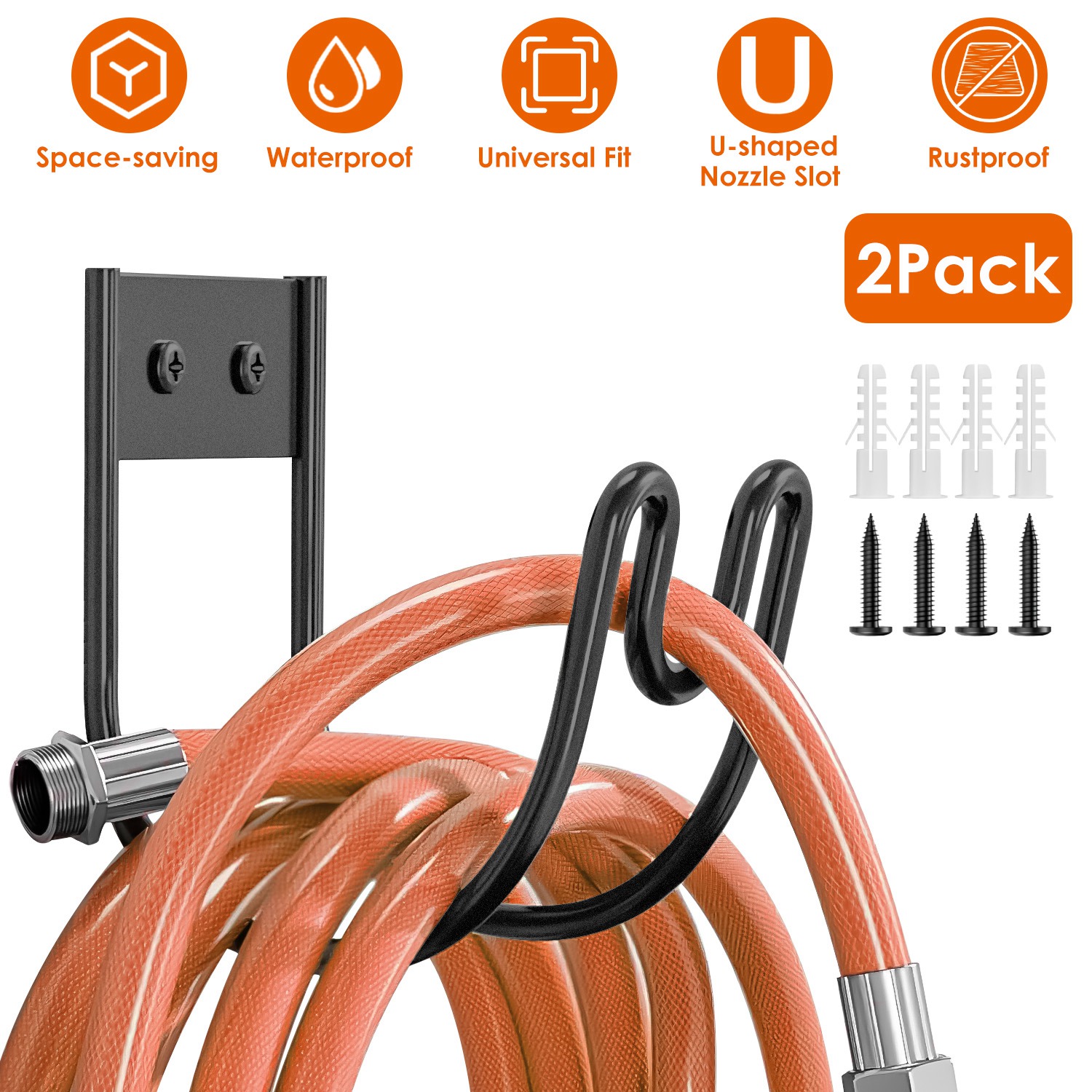 2Pack Heavy Duty Garden Hose Holder Stainless Steel Hose Hook Metal Hose Rack Reel Organizer for Water Hose Extension Cords
