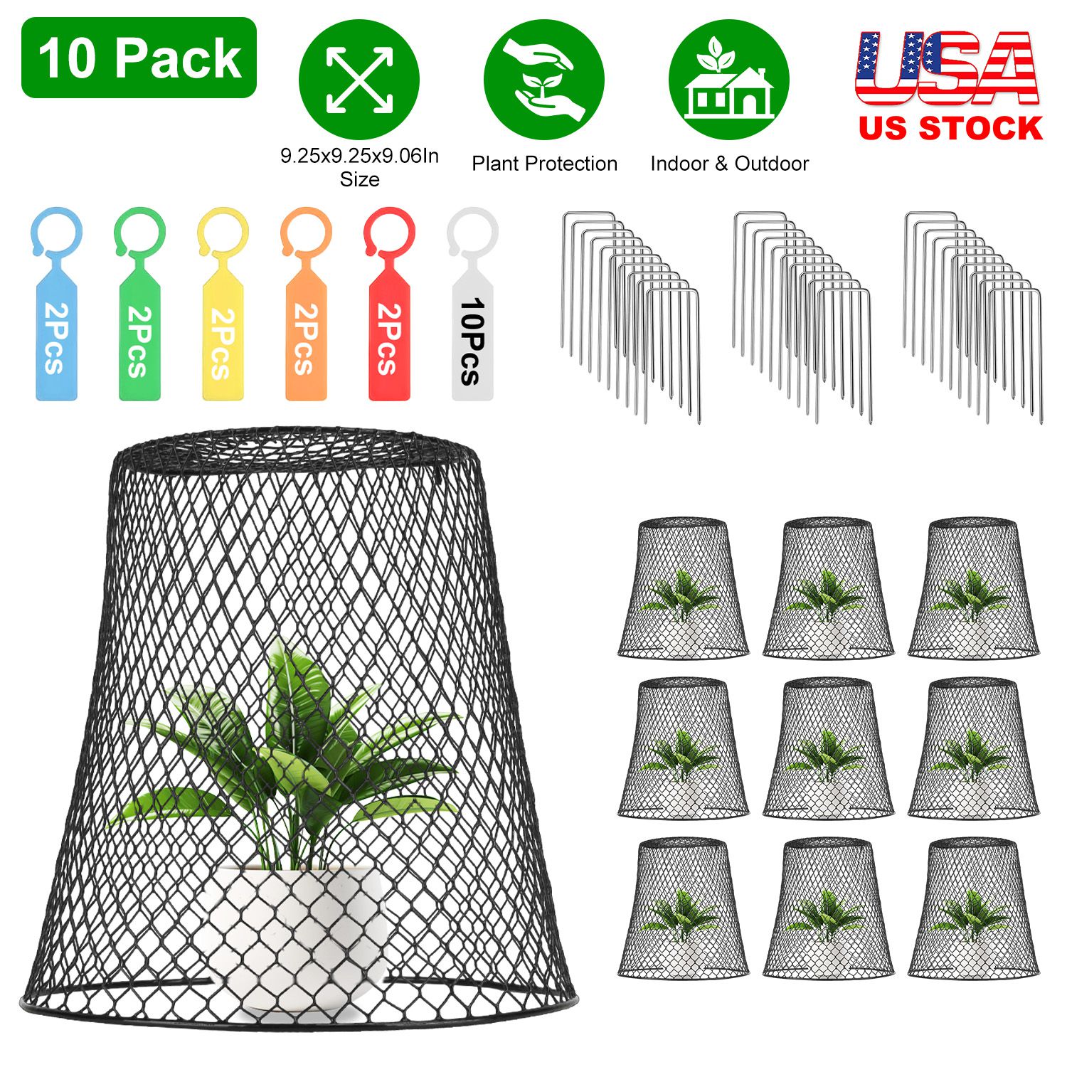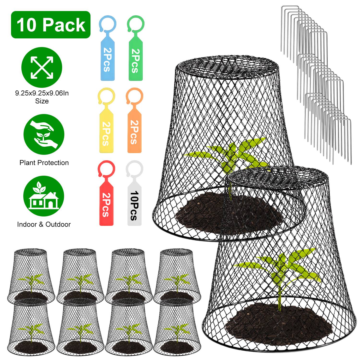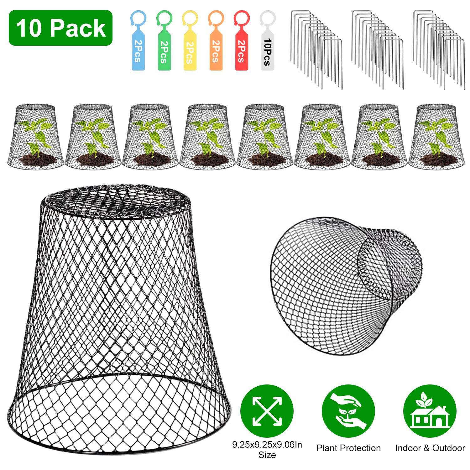 Home > 10Pack 9.25x9.25in Chicken Wire Cloches Plant Covers Metal Garden Cages Heavy Duty Plant Protectors with 30 Stakes 20 Labels Keep Bunnies Chicken Squi