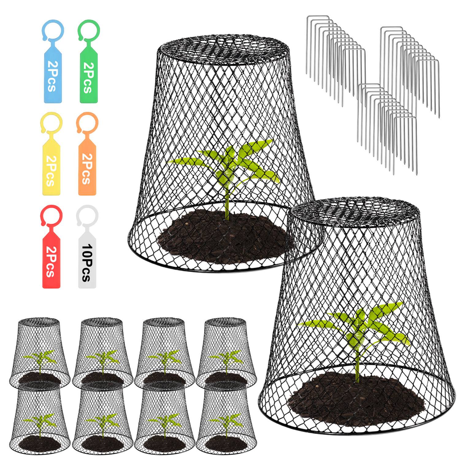 10Pack 9.25x9.25in Chicken Wire Cloches Plant Covers Metal Garden Cages Heavy Duty Plant Protectors with 30 Stakes 20 Labels Keep Bunnies Chicken Squi