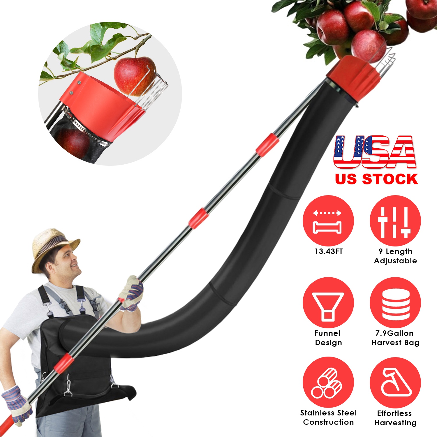 Home > 13.43FT High Reach Fruit Picker Pole with Harvest Bag Heavy Duty Fruit Picking Tool with Basket Funnels Collection Bag for Mango Avocado Lemon Apples