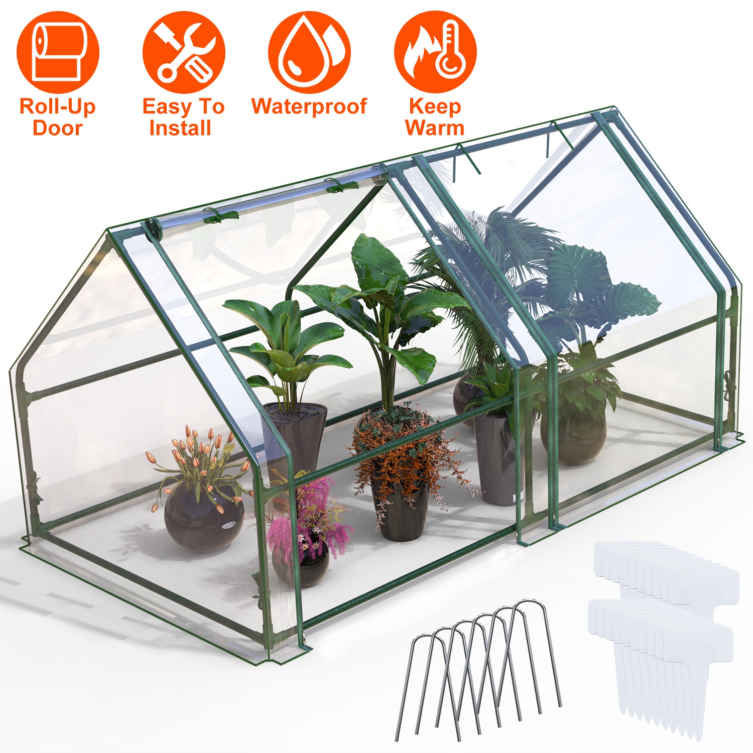 Home > Portable Mini Greenhouse With Roll-Up Zipper Doors Waterproof UV-Resistant PVC Cover Hot House For Indoor Outdoor Garden Patio Backyard 70.86*33.46*37
