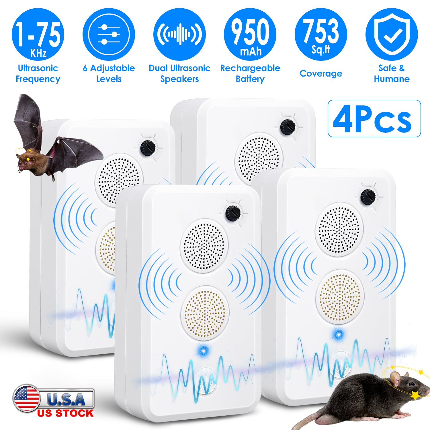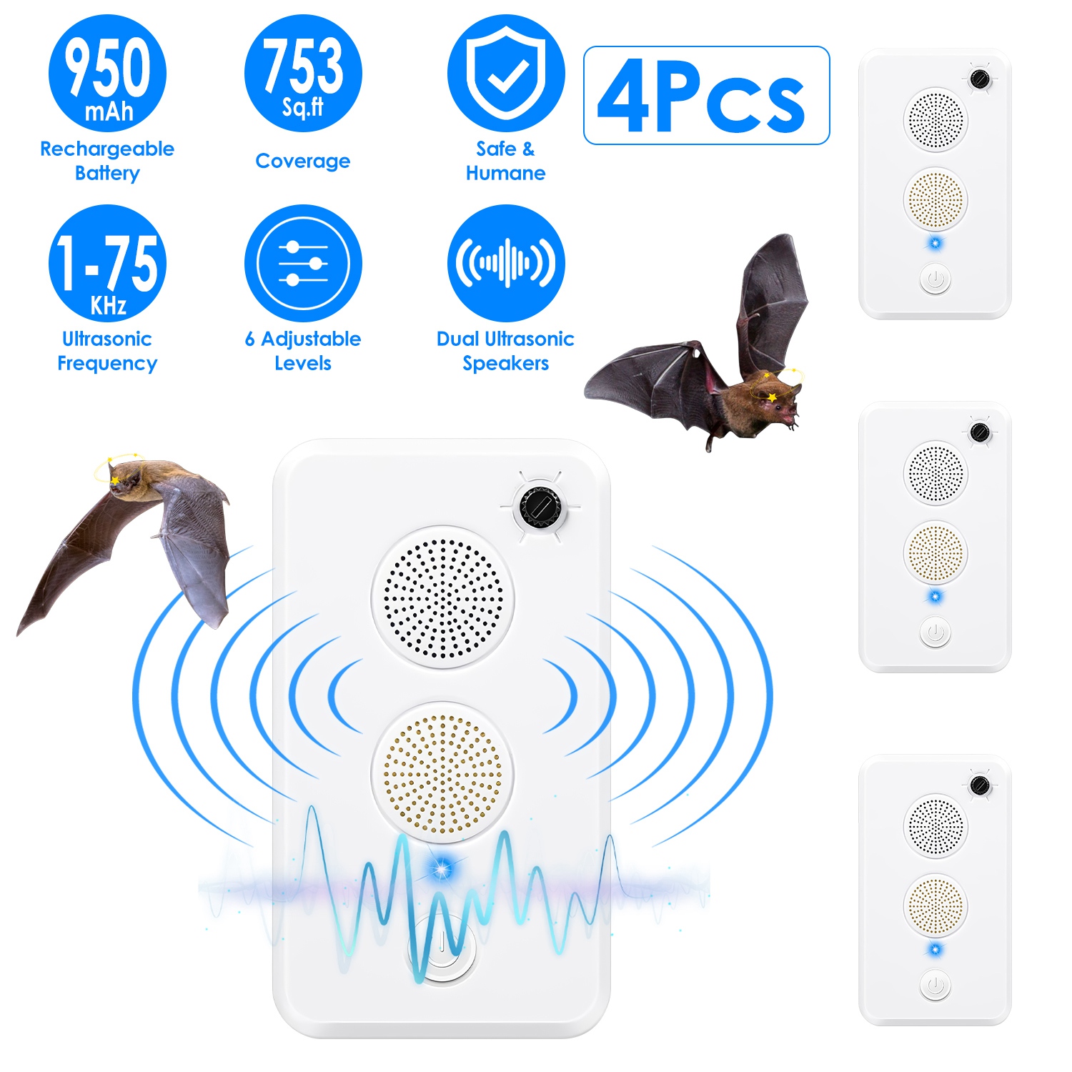 Home > 4Pack Rechargeable Ultrasonic Bat Repellent Indoor Outdoor Bird Mouse Deterrent Device with 6 Adjustable Levels for Attic Porch House