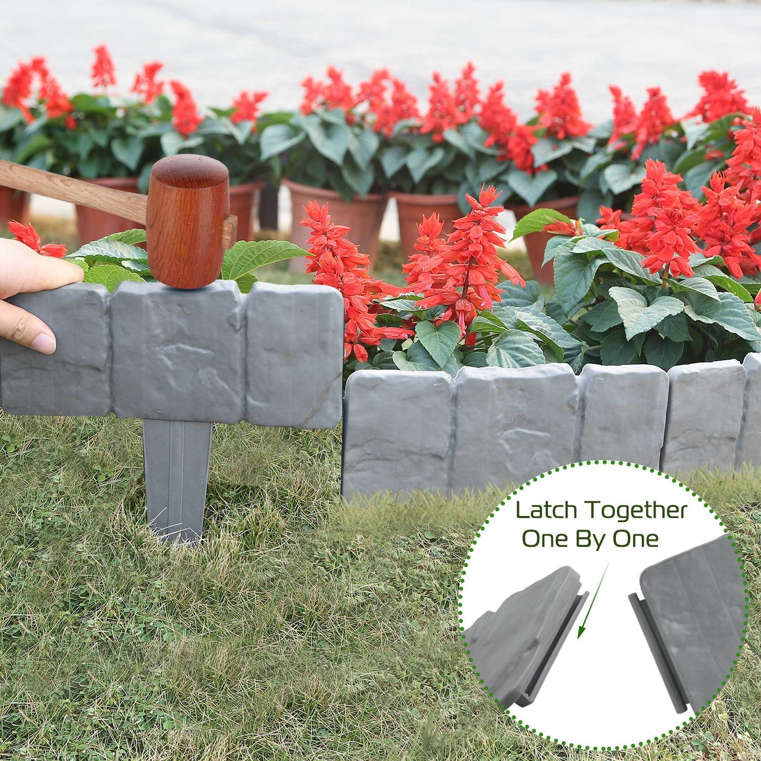 • *Easy One-Person Installation*:This plastic lawn edging consists of 20 pieces that are pliant enough and can be easily snapped together,arranged in curves and pounded in the loosened ground,all of which can be done fast by a single person without need for digging.