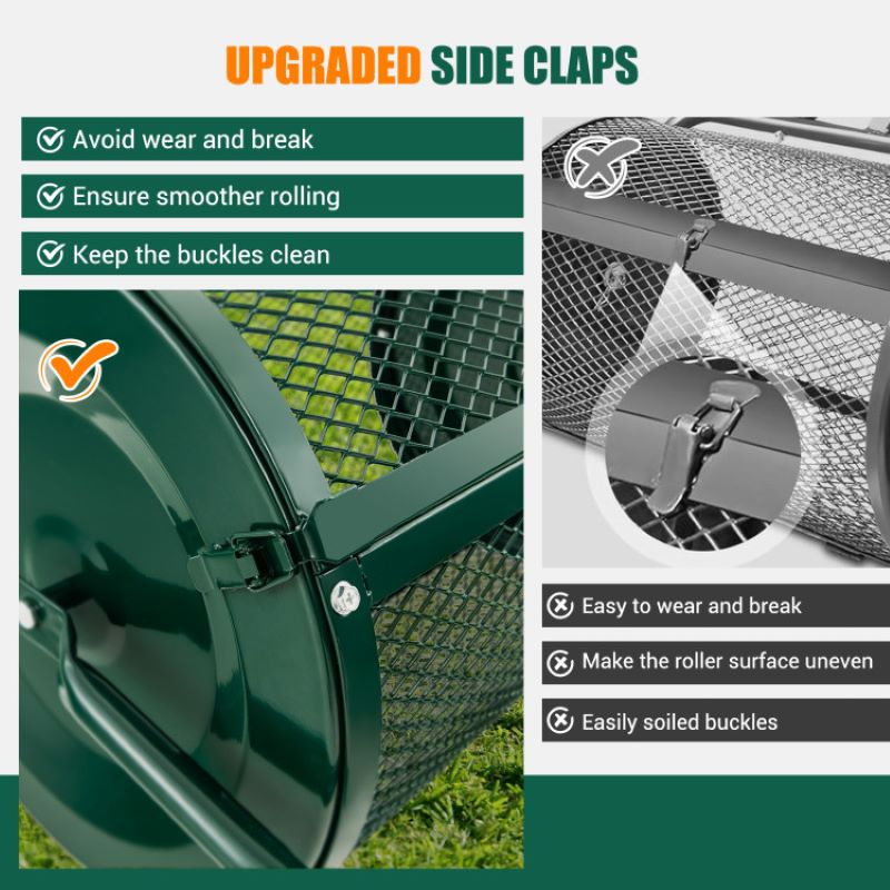 4.Constructed with a powder-coated heavy-duty metal frame, the metal mesh compost roller is deformation-resistant, sturdy and anti-rust for durability.